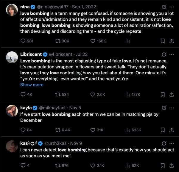 Love bombing is the opposite problem. Instead of pulling away, someone rushes in so fast it feels like you hit fast-forward on the relationship. While it can feel sooo nice it’s also not healthy. Surveys show nearly 70% of people say they’ve been love-bombed, and the number jumps even higher among dating-app users. Researchers link the behavior to insecure attachment styles and even narcissistic traits. The Crown Prosecution Service officially categorizes love bombing as part of coercive control because the pattern often moves from early idealization to jealousy and withdrawal.